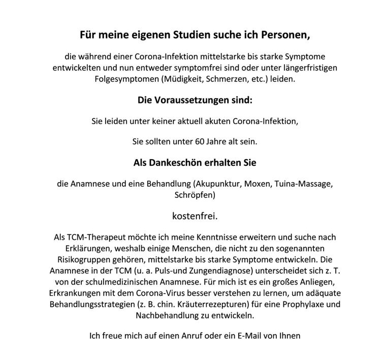 Praxis für TCM Dr. rer. nat. Holger von Jaruntowski Heilpraktiker Widdersdorfer Straße 183 50825 Köln Ehrenfeld Tel.: 0160-2802592 mail.: jaruntowski@gmx.de